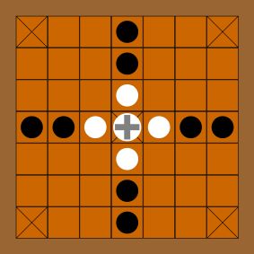 Toscana has simple rules. Both players have 16 tiles (which are divided into 8 squares in a 2x4 grid). The squares show either red roofs or gray plazas. One set, used by the 'roof' player, has roofs on 6 of the 8 squares on each tile. The other set, used by the 'plaza' player, has plazas on 6 of the 8 squares on each tile. Each player shuffles their stack of tiles and places them FACE UP before them. (Thus you can see what your opponent's next tile will be.) The tiles will be placed onto a 17x17 board.