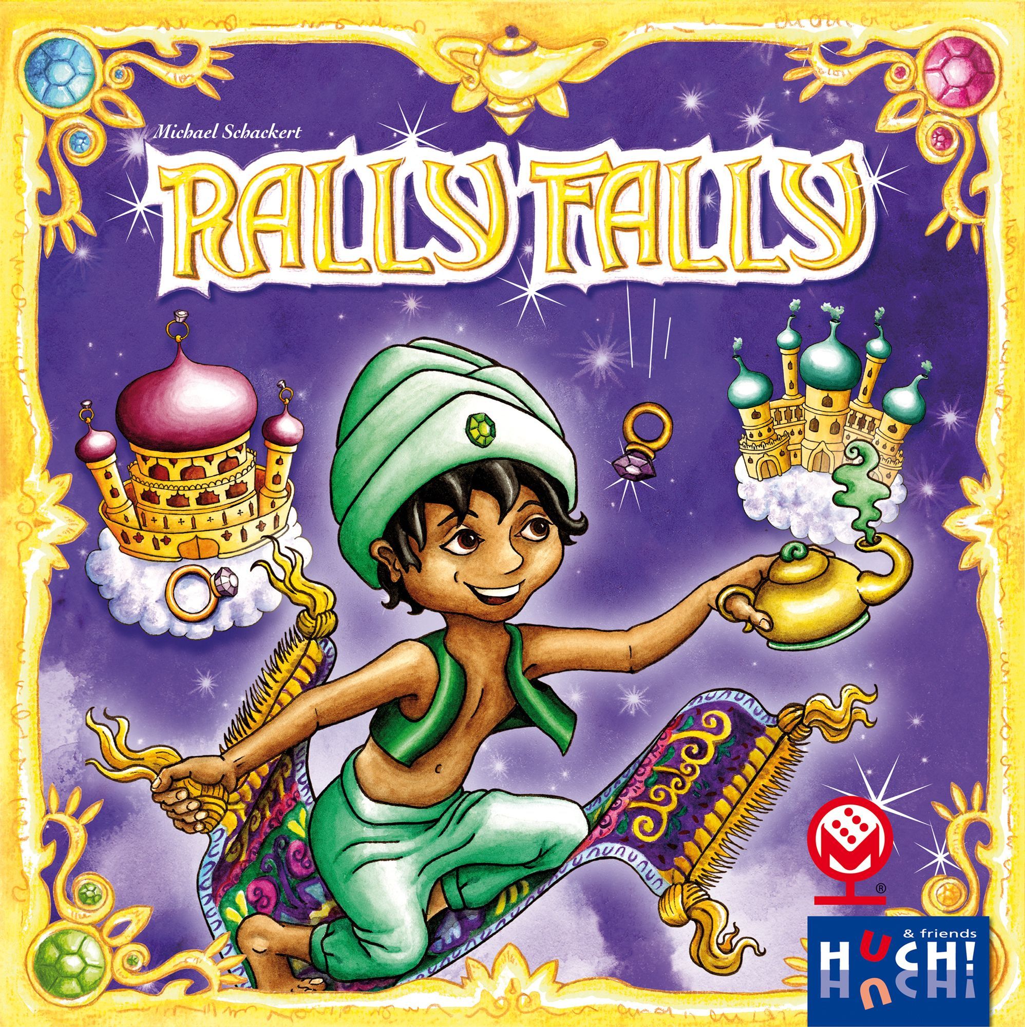 On a turn, a player rolls one or more dice, then chooses the highest die and moves their snail that many "rotations", counting once for each time that the black line on the wheel meets the fixed black line. Whoever crosses the finish line first wins!