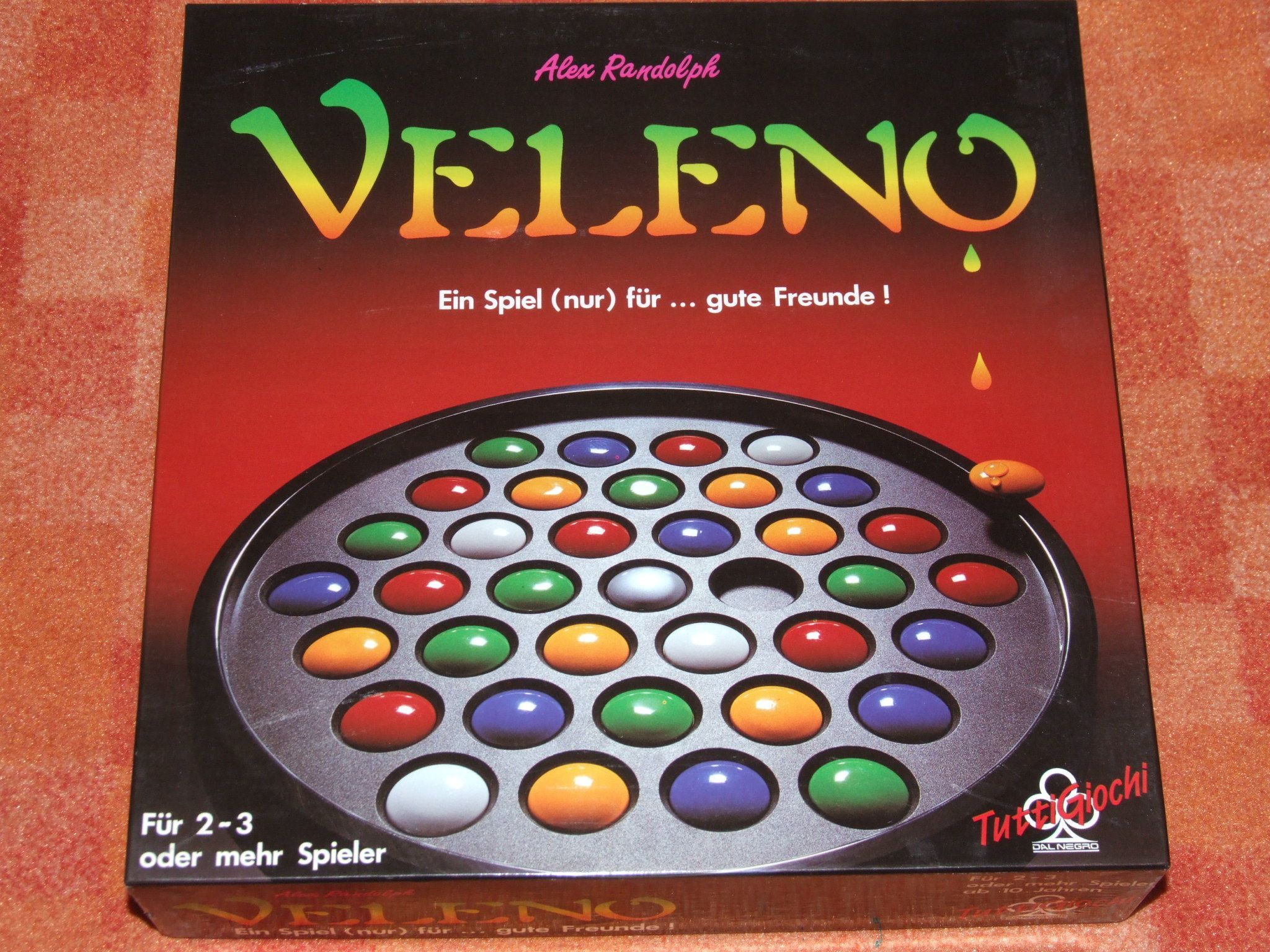 Neuron is an abstract tile placing game designed by Reiner Knizia. The players build a neural network by placing hexagonal pieces. The corners of the pieces are connected with lines in 4 different colours. For like-colored connections the players score points. The game can also be played as single-player game.